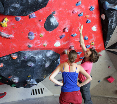 Neben Klettergeburtstagen für Kids sind ein individuelles Bouldertraining, klassische Toprope-Kurse bis hin zum Vorstiegs- oder Technik-Coaching an der Tagesordnung. Unsere Kurse finden ausschließlich in Kleingruppen von 4 – 6 Personen statt. So ist ein ruhiges Kursklima garantiert bei dem auch komplexe Inhalte individuell erläutert werden können und wir jeder Fragestellung gerecht werden können.